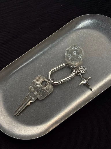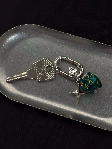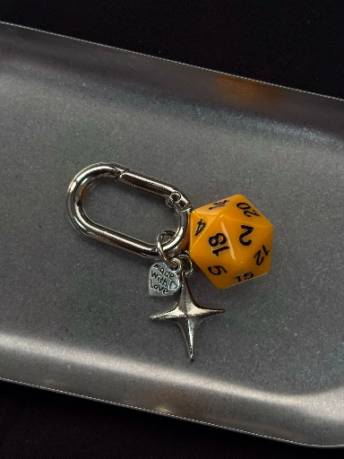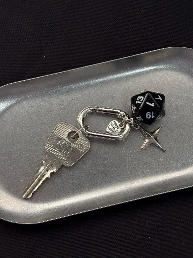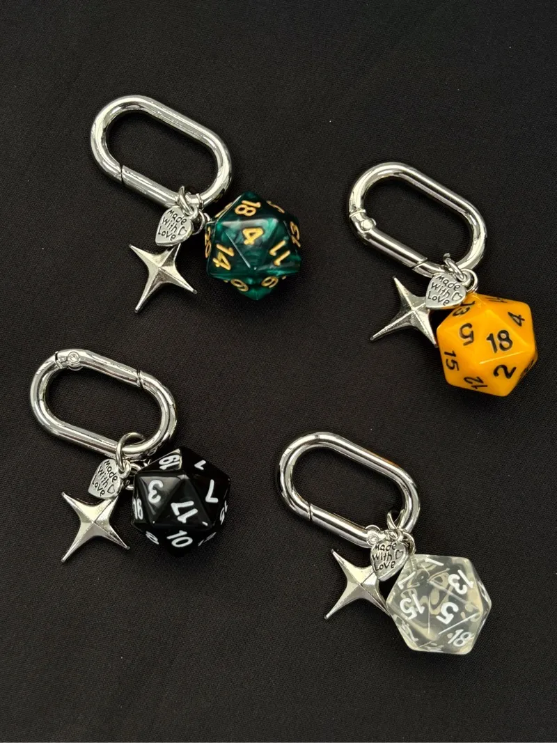 Reach for the stars on your next adventure with the “Astra” Dice Charm Keychain. This premium accessory blends the thrill of tabletop gaming with a touch of cosmic style. Each charm features a high-quality, vibrant d20 die paired with a sleek, chrome four-point star dangle and a sweet “Made With Love” heart tag. It’s the perfect, durable piece for gaming enthusiasts and trendsetters alike, ready to clip onto your keys, backpack, or favorite bag.